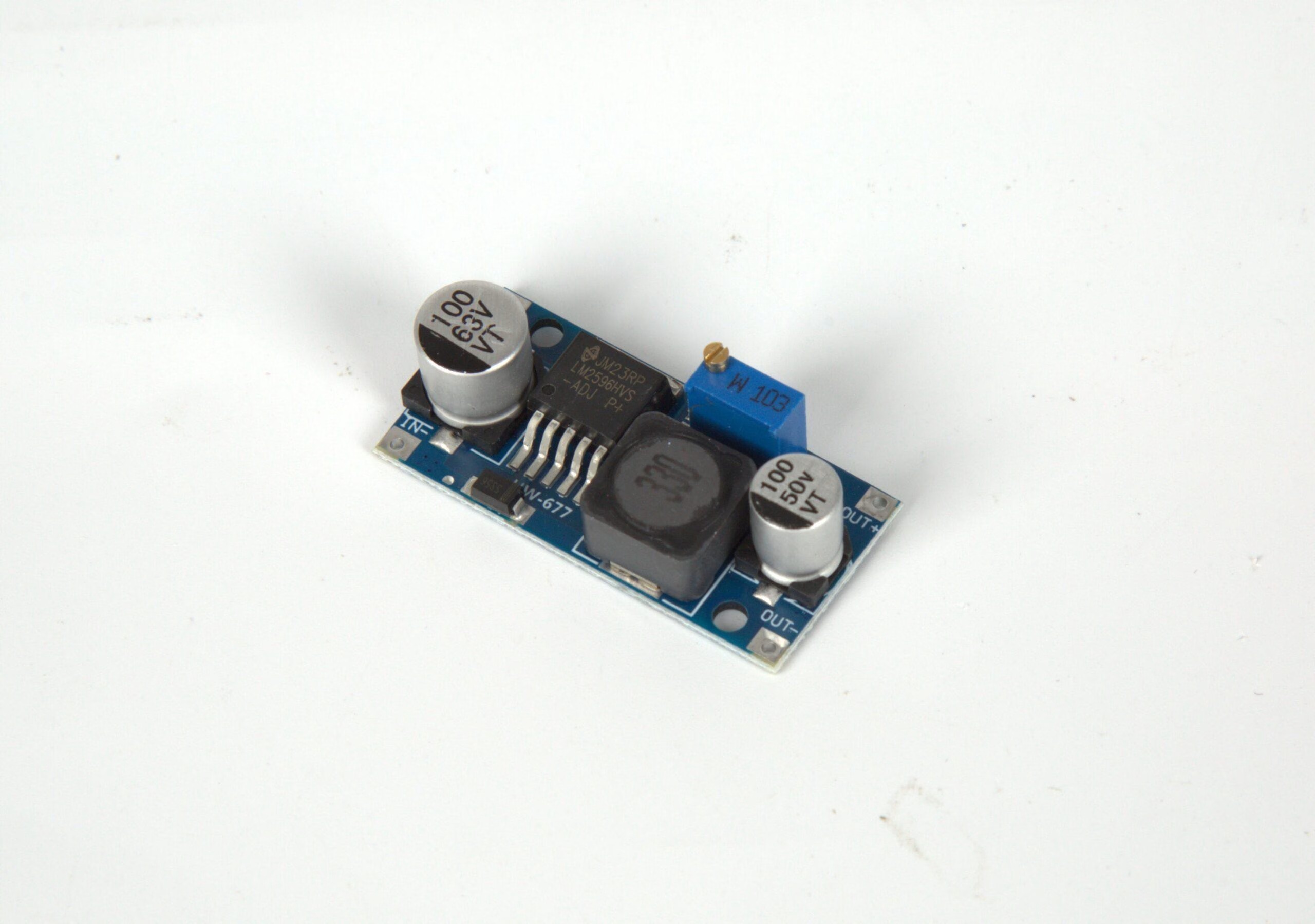 5.Adjustment mode: firstly connect the input power supply (between 5-60V) and then use the multimeter to monitor the output voltage and adjust the potentiometer (generally turn the booster clockwise, reverse the buck)