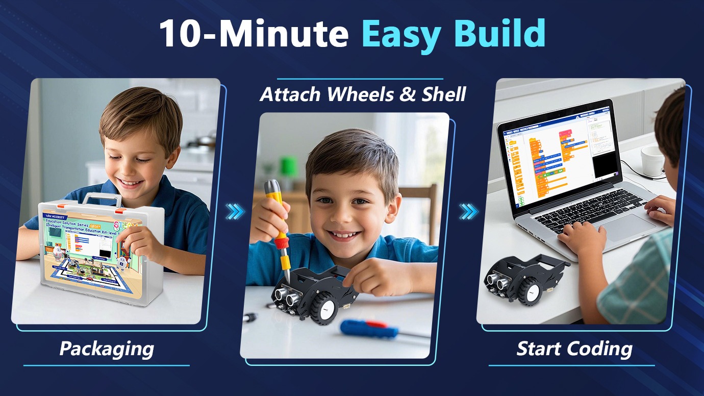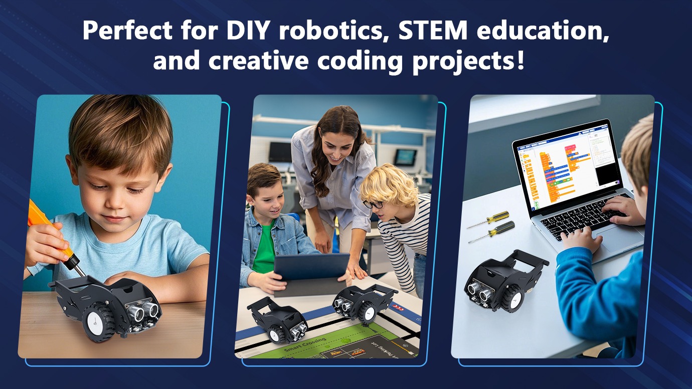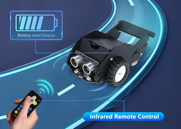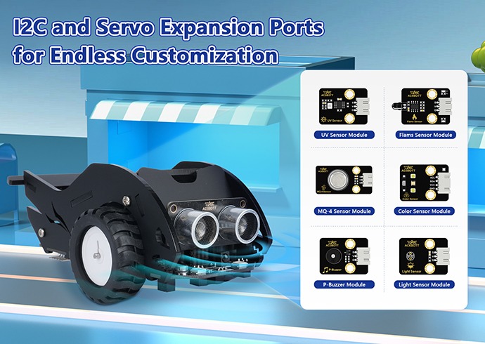 Through Intelligent Transportation Edu Kit Level 2  (Sharkbot Smart Car), students can explore various smart car functions, such as encoder motor control, line following, obstacle avoidance, and infrared remote control. Additionally, they can control the car using custom voice commands, enhancing their hands-on learning experience.