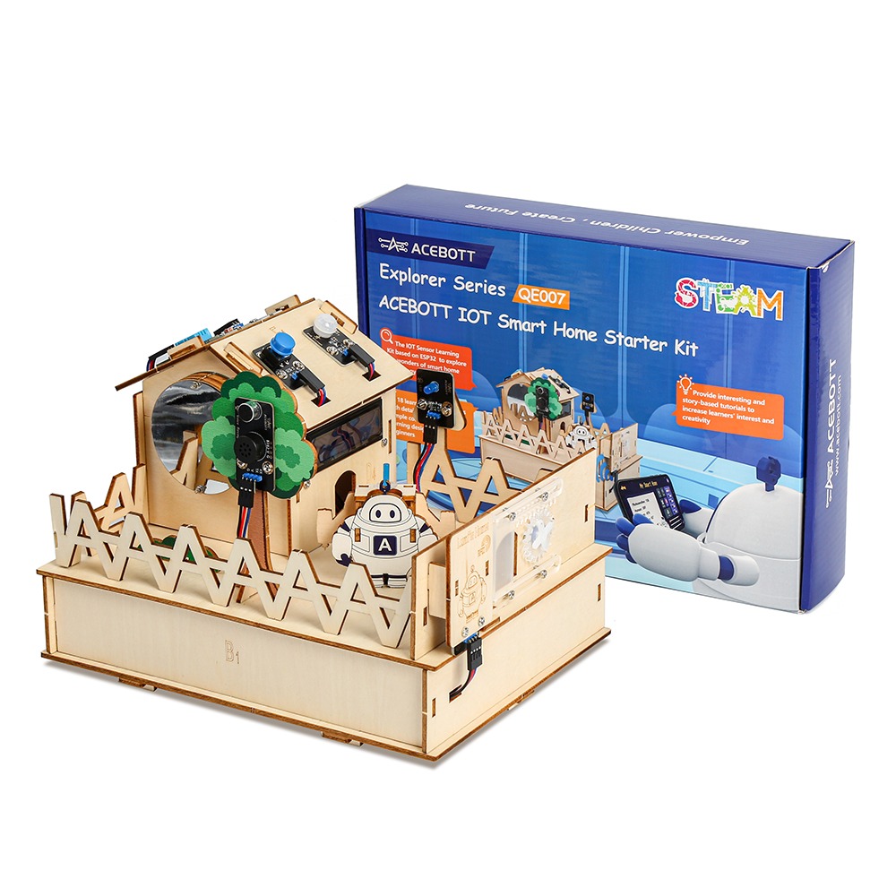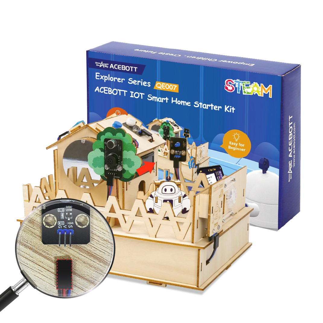 This kit is based on story-based learning tasks and rich electronic modules to lead children to learn related circuit and programming knowledge through the STEAM education concept, and immerse them in the fascinating world of smart home.
